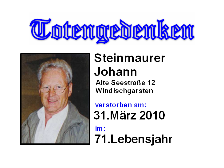 Totengedenken am 31. März 2026